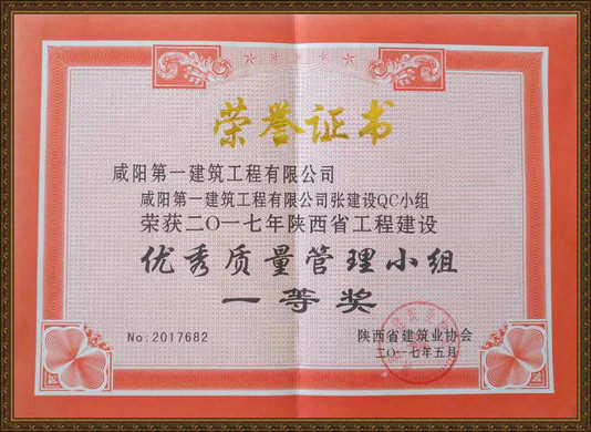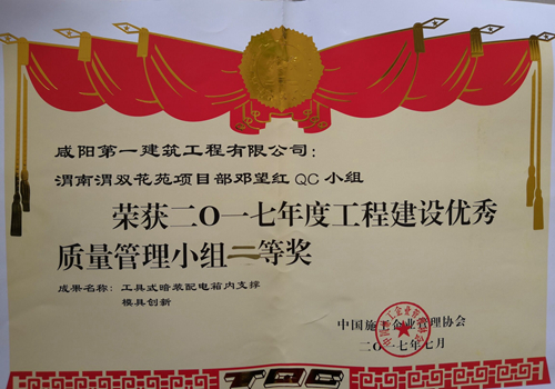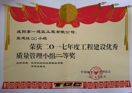 2017年度國家工程建設(shè)質(zhì)量管理小組二等獎(jiǎng)